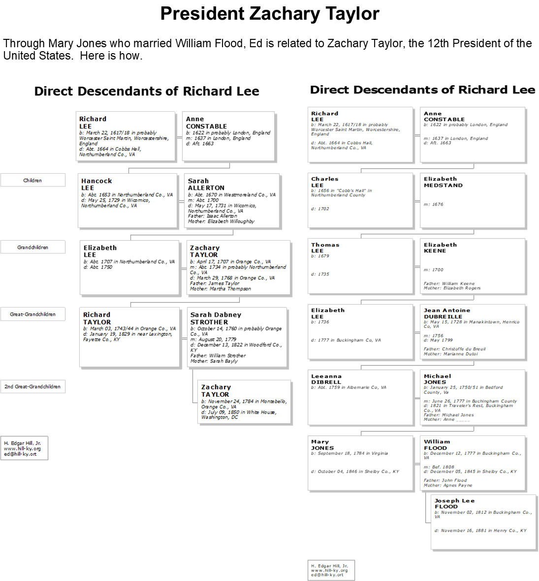 Through Mary Jones who married William Flood, Ed is related to Zachary Taylor, the 12th President of the United States. Here is how. |